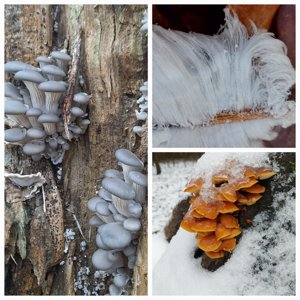 links: Austernpilze, r.o.: Haareis, r.u.: Samtfußrüblinge;