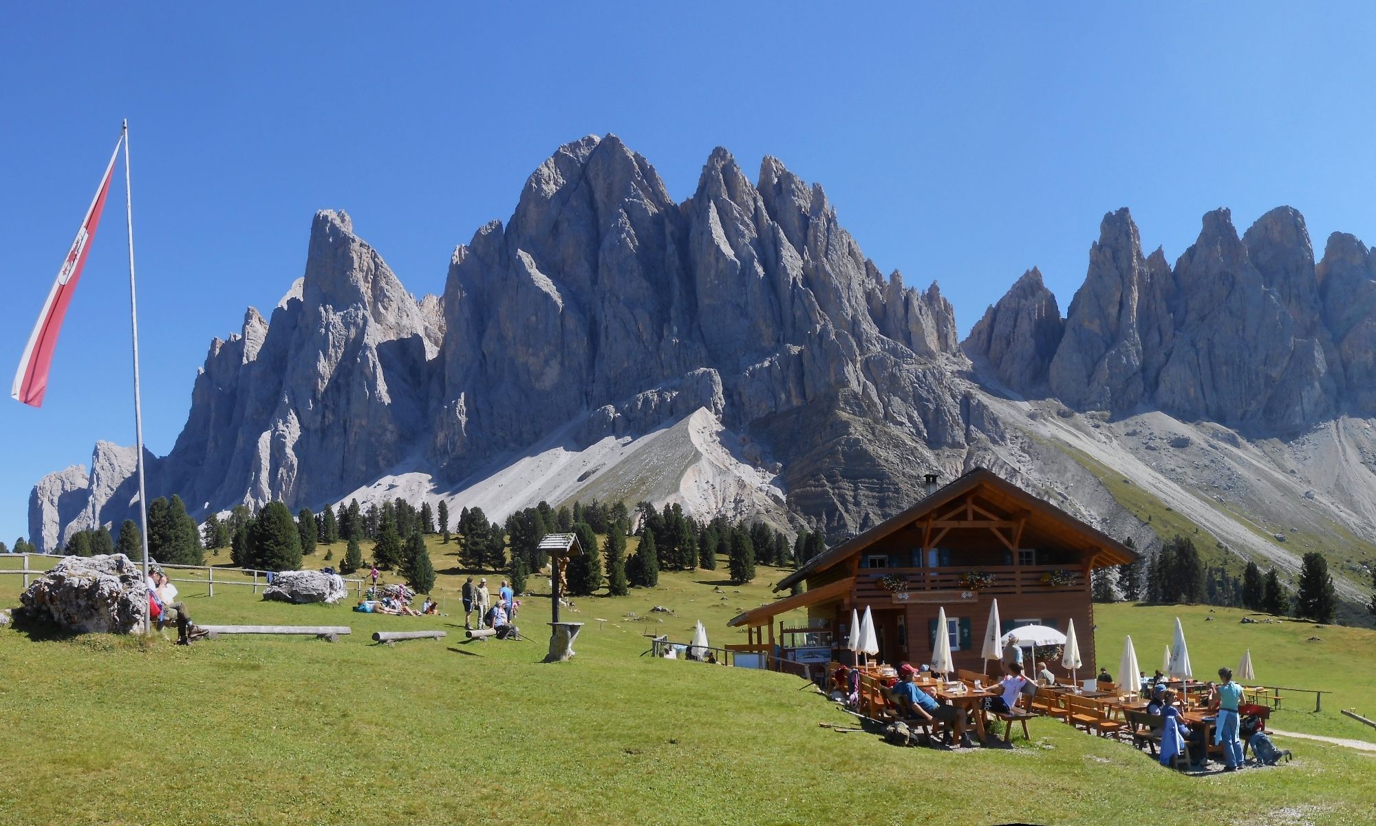 Die Bergtour zum Gipfel des Sass Rigais in den Dolomiten, die die Regensburger Hütte als Ausgangs- oder Endpunkt nutzt. Die Tour ist eine Überschreitung, bei der entweder der Ostgrat oder der Südwestgrat als Auf- und/oder Abstiegsroute dient. Der Zustieg zur Hütte ist relativ einfach, aber die Klettersteige auf den Gipfel erfordern alpine Erfahrung und die richtige Ausrüstung wie Helm und Klettersteigset.