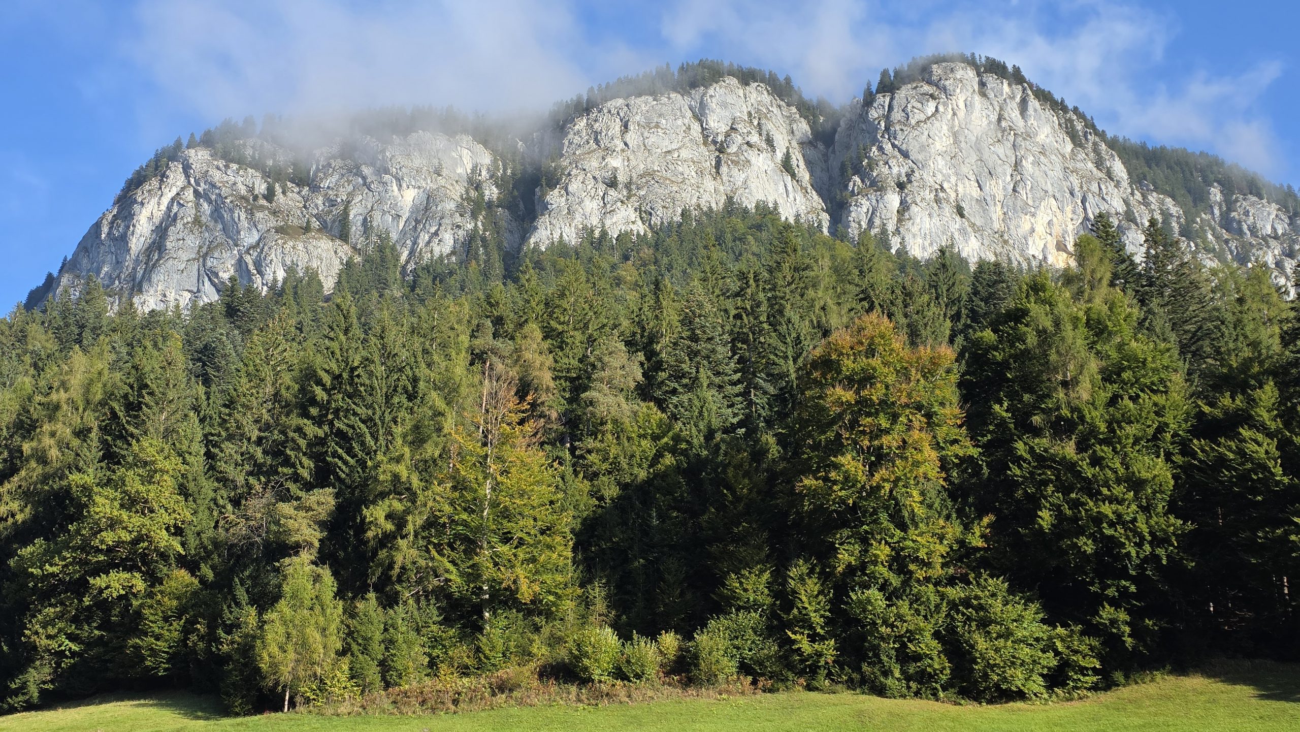 Der Große Pölven (1594m, auch „Mittagskogel“ genannt) überhalb Kufsteins ist ein eher unbekannter Gipfel, obwohl man ihn bei fast jeder Fahrt auf der Inntalautobahn sieht. Auf das Inntal bietet er auch eine super Aussicht. Weit reichen die Blicke über Rofan, Karwendel bis zu den Bayerischen Voralpen. Der Zustieg erfolgt auf abwechslungsreichen Wegen und einem leichten Klettersteig („Lengauer-Steig“, Schwierigkeit A, ganz kurz max. B, ca. 150hm) – hier sollten ungeübte ggfs. ein Klettersteigset mitführen. Der Abstieg erfolgt auf steilem Pfad und Forstweg. Insgesamt eine abwechslungsreiche Rundtour mit zwei bis vier Gipfelkreuzen und gemütlichen Gipfel-Bänken, auf der man selten keinen Platz findet. Mittag auf dem Mittagskogel – Prima 🙂