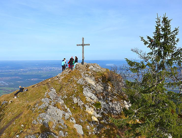 Die kleine Felsstufe am Gipfelaufbau erfordert Trittsicherheit.