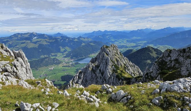 gemütliche Frühjahrswanderung mit Aussicht auf die gesamte Alpenkette