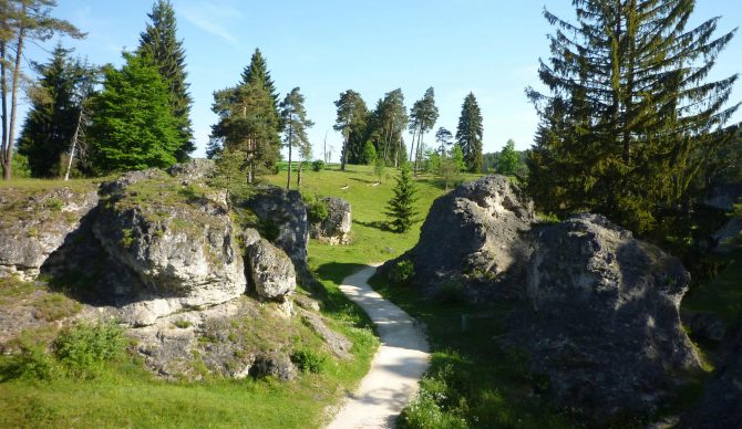 Wandern auf naturbelassenen Wegen durch Wald und Wiesen abseits von Lärm und Verkehr im Schwäbischen Wald
